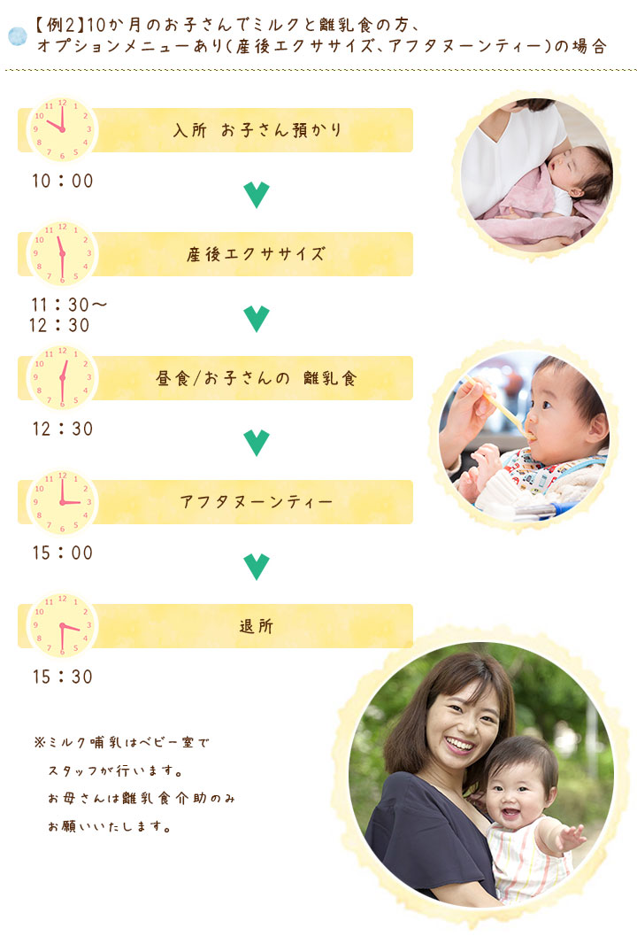 *個人持ちミルクをご希望の方は、調乳/管理はお母さんにお願いしております